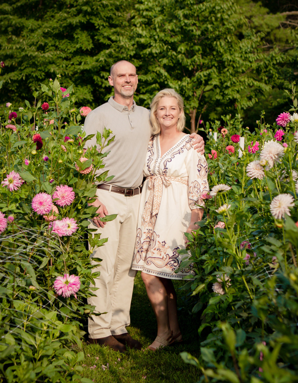 I had to try my hand growing this unique flower. My husband, Craig, built me a few raised beds to protect these delicate plants. There was some trial and error, but as it turns out, they grew well for us. What started as a small backyard experiment, quickly grew into a flourishing farm. Over time, I realized these blooms weren’t just flowers—they were joy, resilience, and connection all wrapped into one, and I had to share them with the world. To this day, when my flowers are displayed, I smile when I hear people say, “Are those real? Can I touch them?” It reminds me of the first time I saw dahlias in person